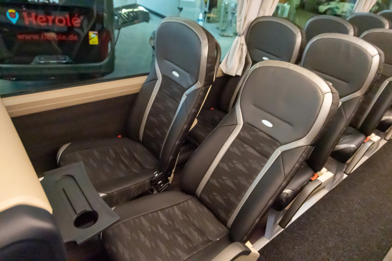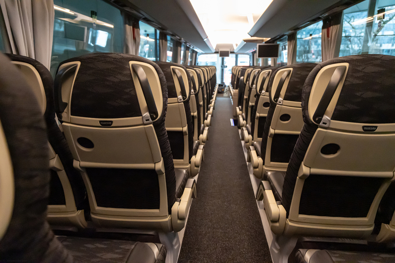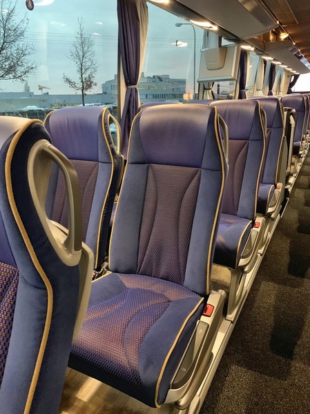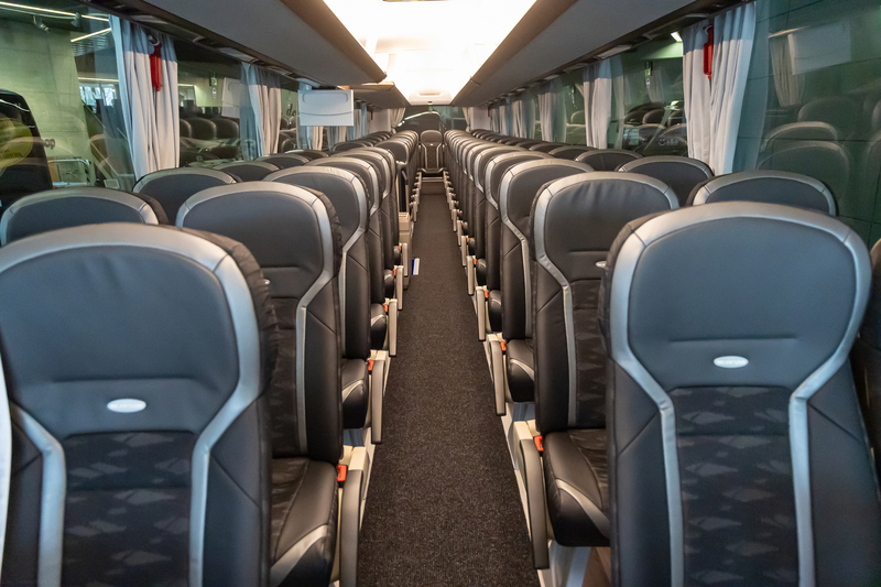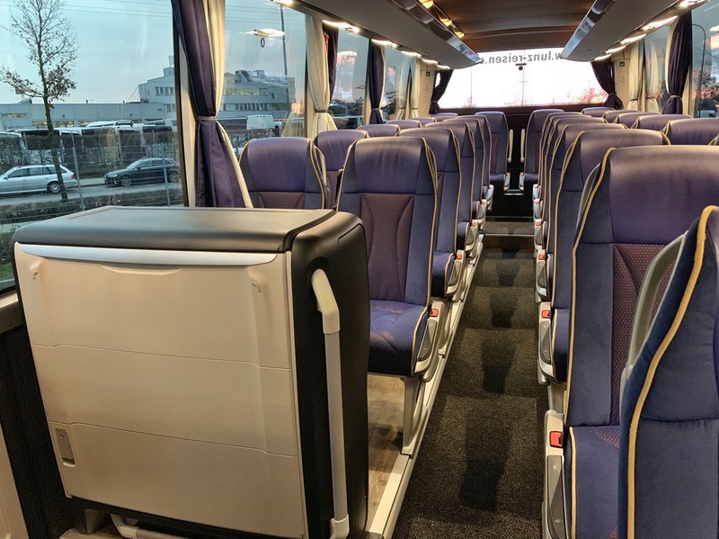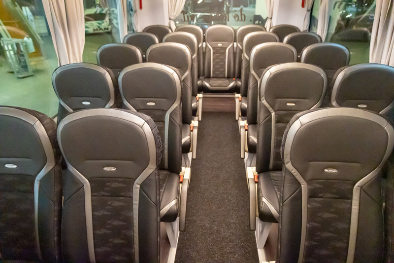 ausgestattet mit 33 Schlafsesseln, Klimaanlage, Bordküche, Toilette, DVD und Kühlschrank